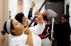 Xavier Coats, 23, of Calumet City, was busy painting another wall. He attends Chicago Southland YouthBuid, a vocational school.
